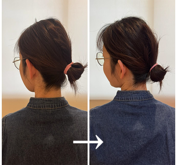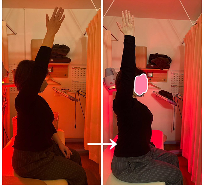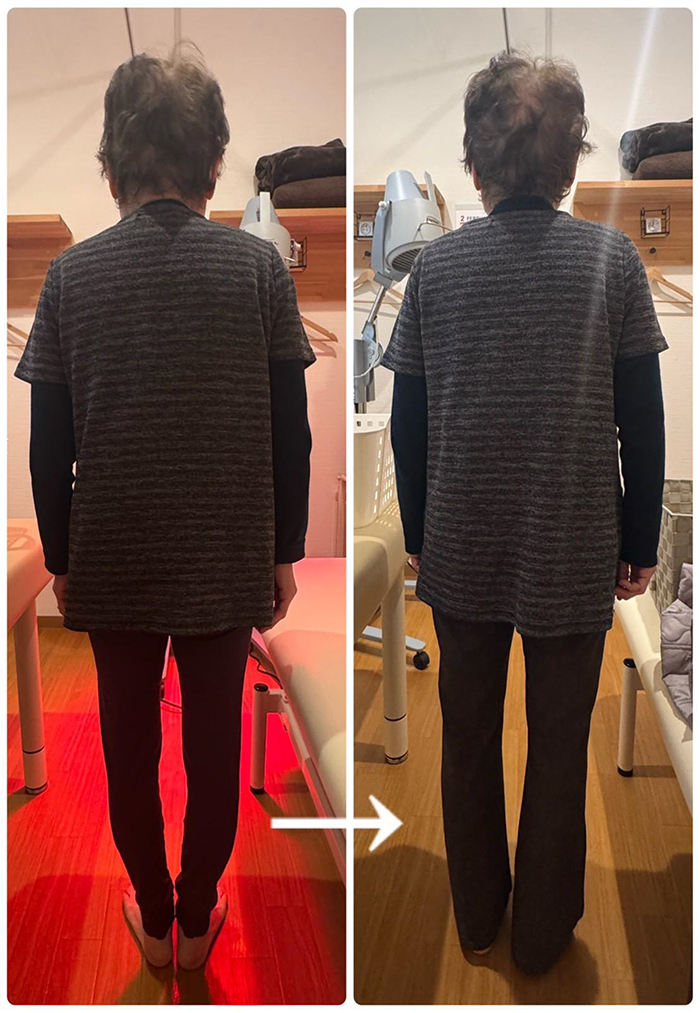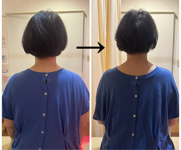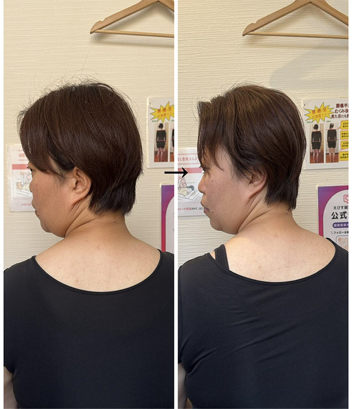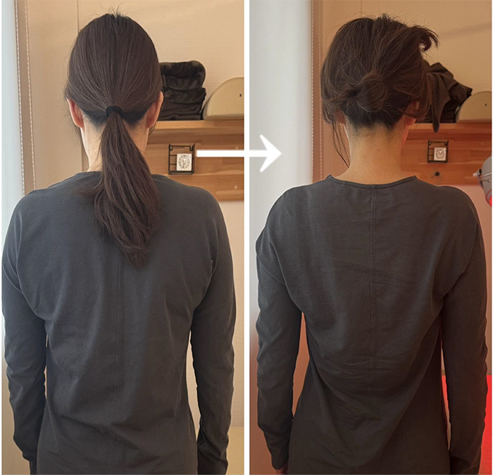 後面全体的に苦しいのと鈍痛があり、このまま放置するとぎっくり腰を再発するのではと感じ、たまたまチラシが入っていたので、一度受けてみようと思い来院しました。あと、前から気になっていたスマホ首や巻き肩、姿勢も悩んでおりました。